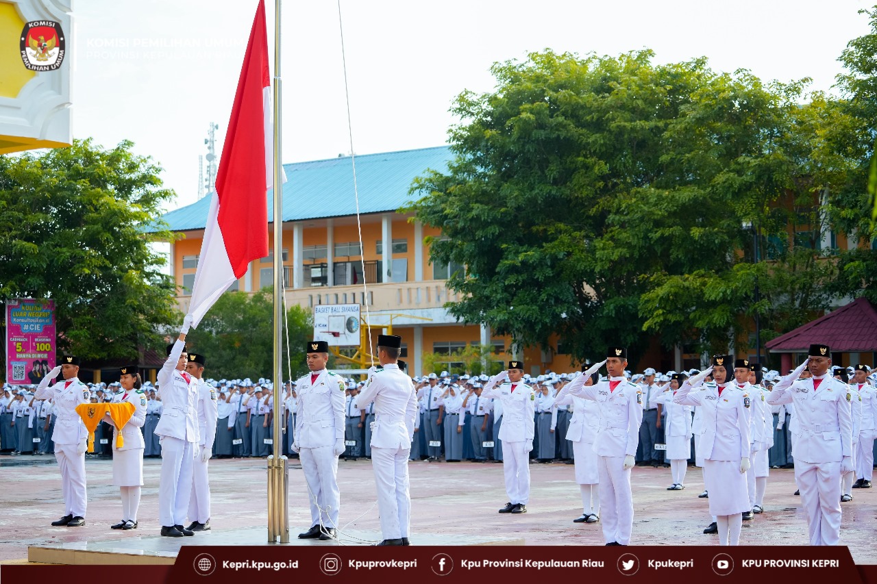 Komisi Pemilihan Umum Provinsi Kepulauan Riau terus melakukan sosialisasi kepada generasi muda, melalui kegiatan upacara bendera yang dilaksanakan di SMAN 1 Tanjungpinang, Senin (01/09/2025).