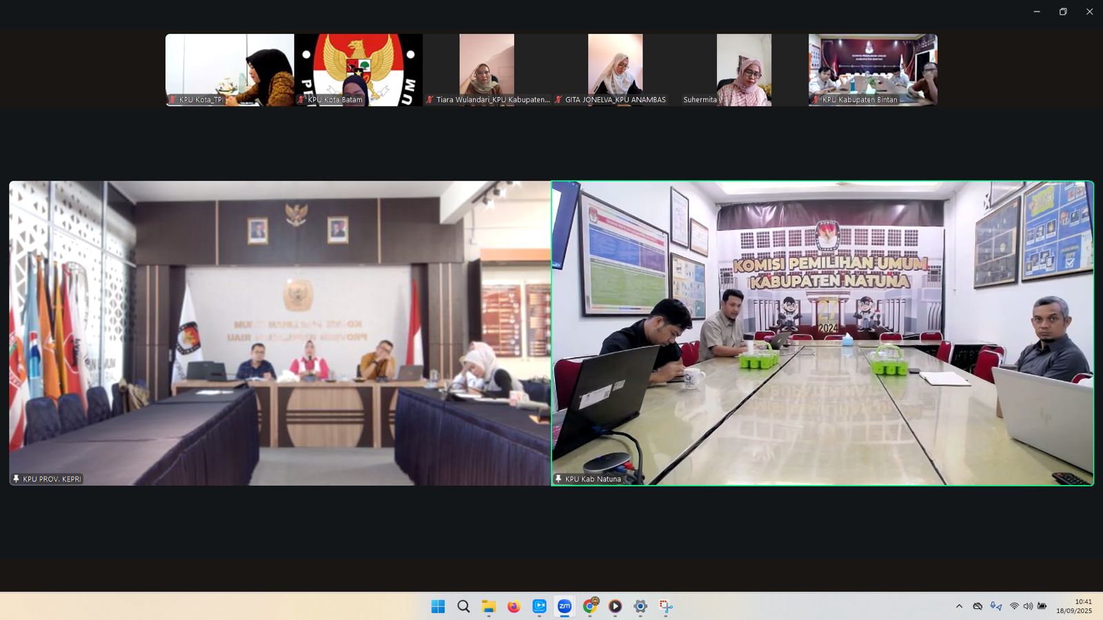 Dalam rangka penguatan kapasitas kelembagaan dalam pengelolaan media sosial, KPU Provinsi Kepulauan Riau menggelar Rapat Koordinasi Progres Pelaksanaan Sosialisasi dan Pendidikan Pemilih Tahun 2025 oleh KPU Kabupaten/Kota se Provinsi Kepulauan Riau yang dilaksanakan secara daring, Kamis (18/09/2025).