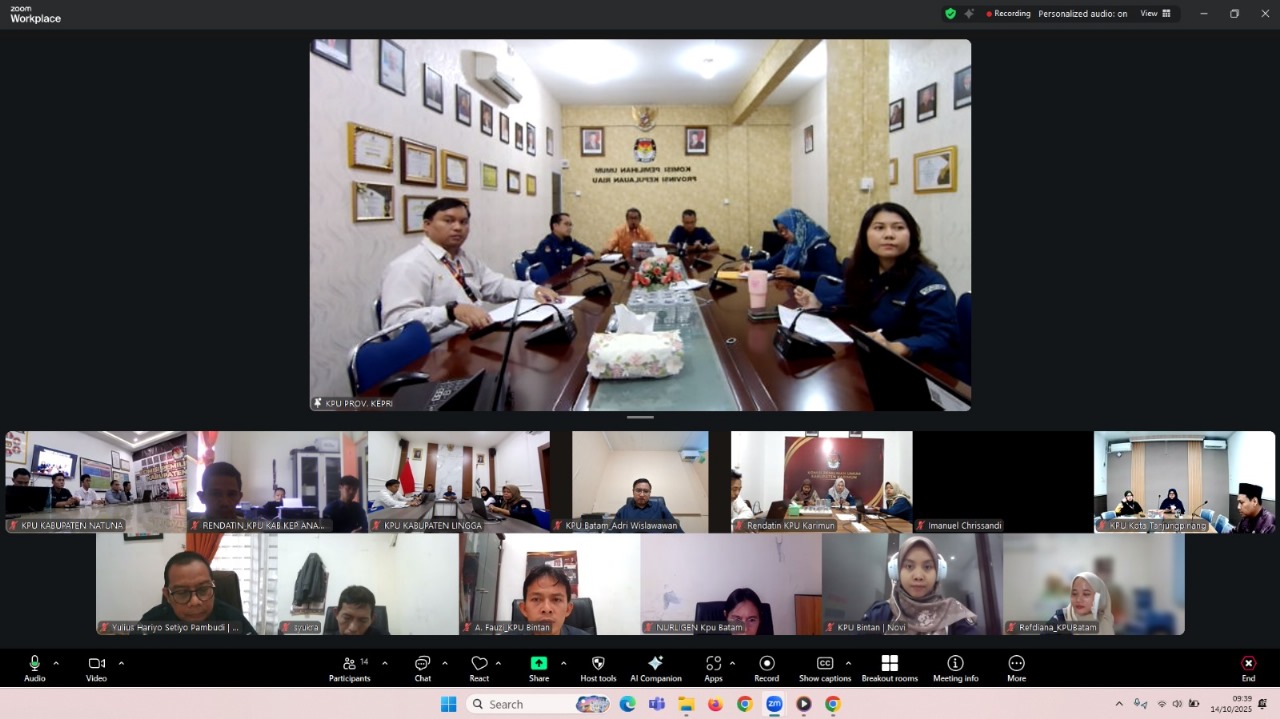 Komisi Pemilihan Umum (KPU) Provinsi Kepulauan Riau menggelar Rapat Koordinasi Tindak Lanjut Data Hasil Sinkronisasi Data Penduduk Potensial Pemilih (DP4) Semester II Tahun 2025, Selasa (14/10/2025). Rapat ini merupakan bagian dari langkah strategis untuk memastikan keakuratan dan validitas data pemilih dalam persiapan pemilu yang akan datang.