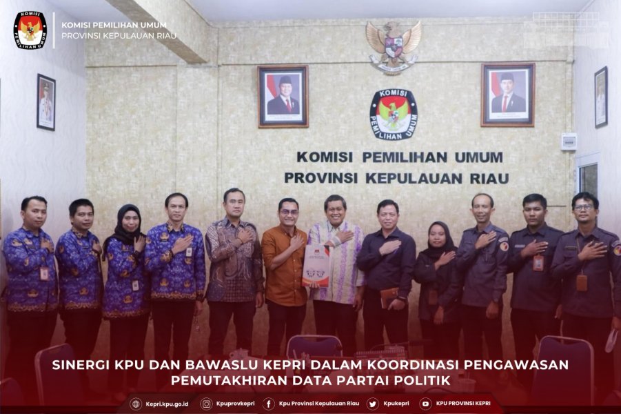 Komisi Pemilihan Umum Provinsi Kepulauan Riau menerima kunjungan Badan Pengawas Pemilu (Bawaslu) Provinsi Kepulauan Riau dalam rangka Koordinasi Pengawasan Pemutakhiran Data Partai Politik Tingkat Provinsi pada Senin, (17/11/2025), bertempat di Kantor KPU Provinsi Kepulauan Riau. Pertemuan ini menghasilkan sejumlah poin strategis terkait penguatan sinergi dan validitas data kepengurusan partai politik.