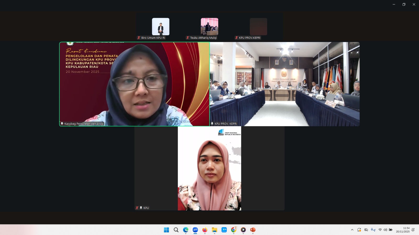 Komisi Pemilihan Umum Provinsi Kepulauan Riau menggelar Rapat Koordinasi Pengelolaan dan Penataan Arsip bagi KPU Provinsi serta KPU Kabupaten/Kota se-Kepulauan Riau, Kamis (20/11/2025). Kegiatan berlangsung di Rumah Pintar Pemilu (RPP) KPU Kepri dan diikuti oleh seluruh jajaran sekretariat yang membidangi kearsipan.