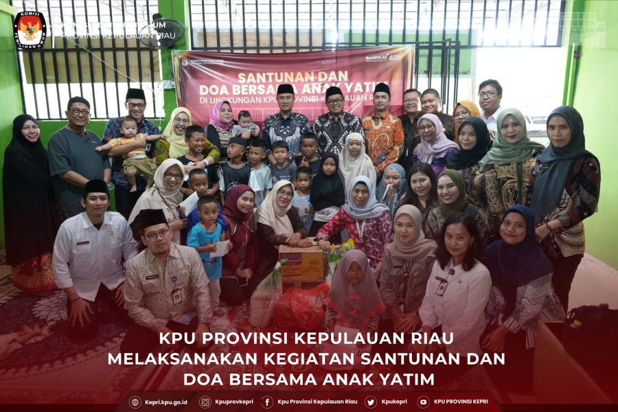 Dalam rangka meningkatkan kepedulian terhadap generasi bangsa serta mempererat tali silaturahmi dan solidaritas antar sesama, Komisi Pemilihan Umum (KPU) Provinsi Kepulauan Riau melaksanakan kegiatan KPU Peduli Anak Yatim di Panti Asuhan Nur Arrahman, Jumat (06/02/2026). Kegiatan ini dilaksanakan secara serentak oleh Sekretariat Jenderal KPU RI, KPU Provinsi, serta KPU Kabupaten/Kota se-Indonesia sebagai bagian dari rangkaian menyambut Bulan Suci Ramadhan.