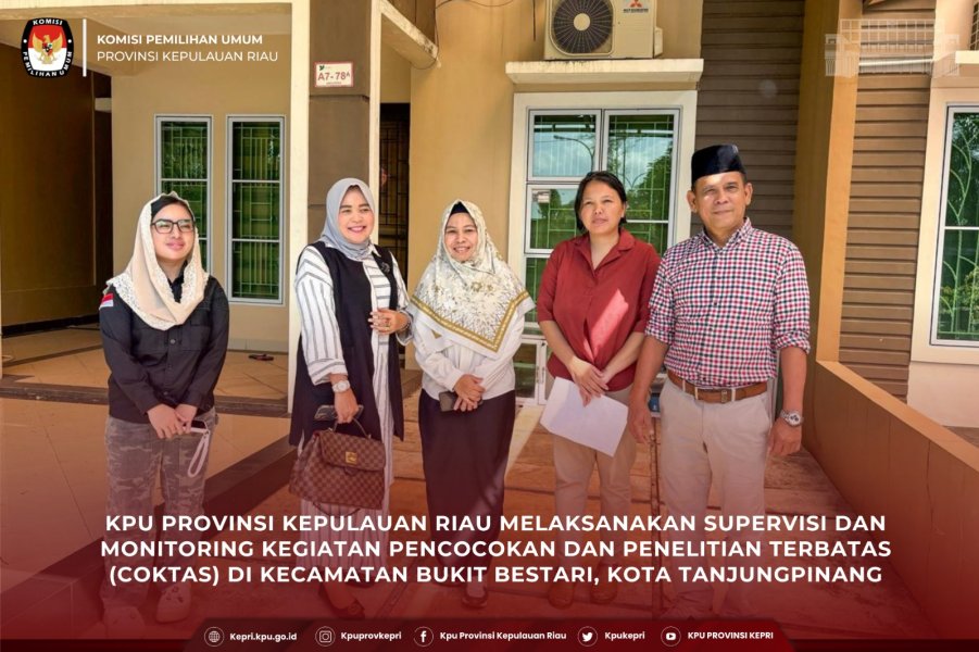 Komisi Pemilihan Umum Provinsi Kepulauan Riau melaksanakan kegiatan supervisi dan monitoring terhadap pelaksanaan Pencocokan dan Penelitian Terbatas (Coktas) yang dilakukan oleh Komisi Pemilihan Umum Kota Tanjungpinang di Kecamatan Bukit Bestari, pada Rabu (11/03/2026).