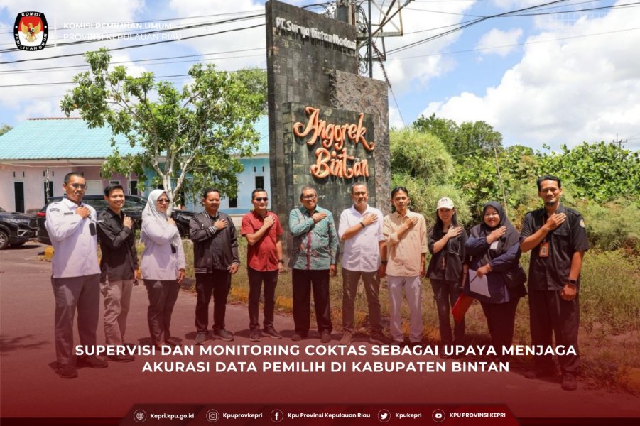 Dalam rangka memastikan data pemilih yang akurat, mutakhir dan komprehensif, KPU Provinsi Kepulauan Riau melaksanakan kegiatan supervisi dan monitoring terhadap Pencocokan dan Penelitian Terbatas (Coktas) yang dilaksanakan oleh KPU Kabupaten Bintan pada Kamis (12/03/ 2026) di Kelurahan Toapaya Selatan, Kecamatan Toapaya, Kabupaten Bintan.