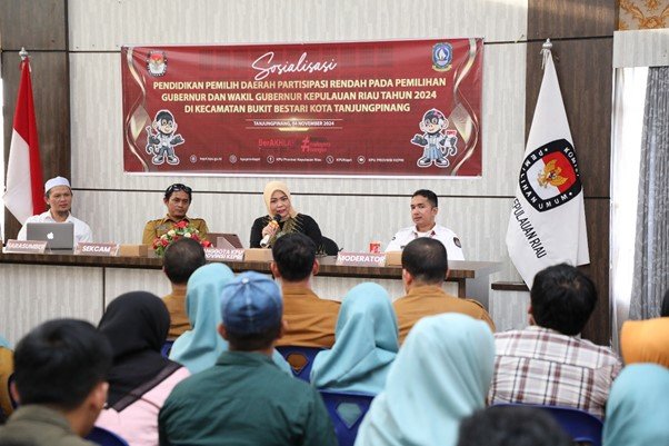 Komisi Pemilihan Umum (KPU) Provinsi Kepulauan Riau menggelar kegiatan Sosialisasi Pendidikan Pemilih di Daerah Partisipasi Rendah untuk Pemilihan Gubernur dan Wakil Gubernur Kepulauan Riau Tahun 2024, di Kantor Camat Bukit Bestari Kota Tanjungpinang, pada Senin, (04/11/2024).