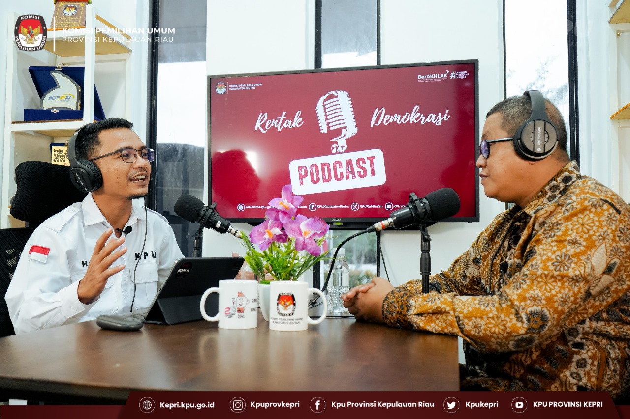 Ketua Komisi Pemilihan Umum (KPU) Provinsi Kepulauan Riau, Indrawan Susilo Prabowoadi, bersama Anggota KPU Provinsi Kepulauan Riau, Jernih Millyati Siregar, menghadiri peluncuran podcast perdana KPU Kabupaten Bintan “Rentak Demokrasi”. Rabu, (23/7/2025).