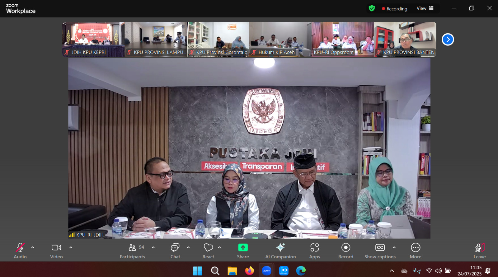 Komisi Pemilihan Umum (KPU) Provinsi Kepulauan Riau mengikuti kegiatan bertajuk “Perkembangan Terkini JDIH dan Standarisasi Pengelolaan JDIH pada Kementerian/Lembaga” yang dilaksanakan secara daring bersama KPU Provinsi se-Indonesia pada Kamis, (24/07/2025).