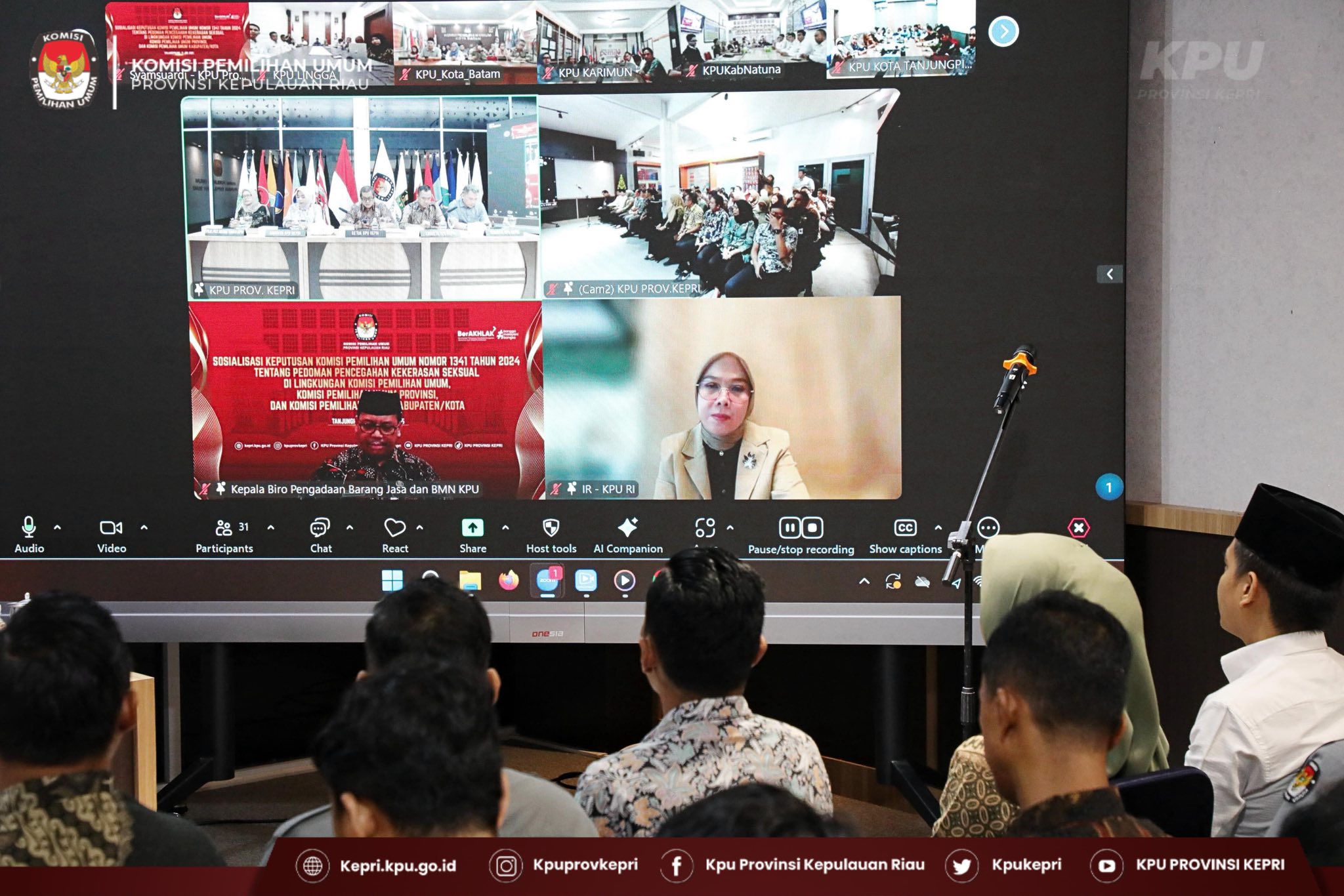 Tanjungpinang - Dalam upaya mewujudkan lingkungan kerja yang aman, sehat, dan bebas dari segala bentuk kekerasan seksual, Komisi Pemilihan Umum (KPU) Provinsi Kepulauan Riau melaksanakan Sosialisasi Keputusan Komisi Pemilihan Umum Nomor 1341 Tahun 2024 tentang Pedoman Pencegahan Kekerasan Seksual di lingkungan KPU, baik di tingkat pusat, provinsi, maupun kabupaten/kota. Kegiatan ini dilaksanakan secara daring pada Jumat, 13 Juni 2025.
