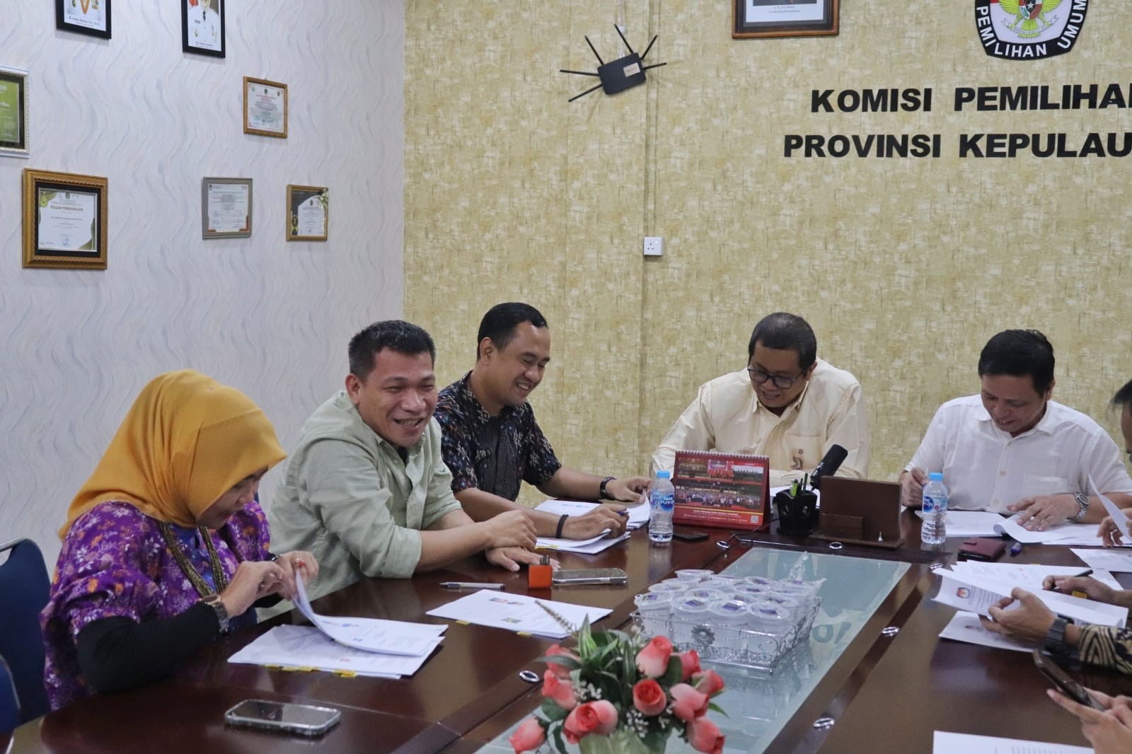 Kegiatan ditutup dengan pemberian gift/souvenir bahan sosialisasi berupa mug/gelas Sura Sulu dan kaos Pemilu 14 Februari 2024 dan foto Bersama. (humaskpukepri).