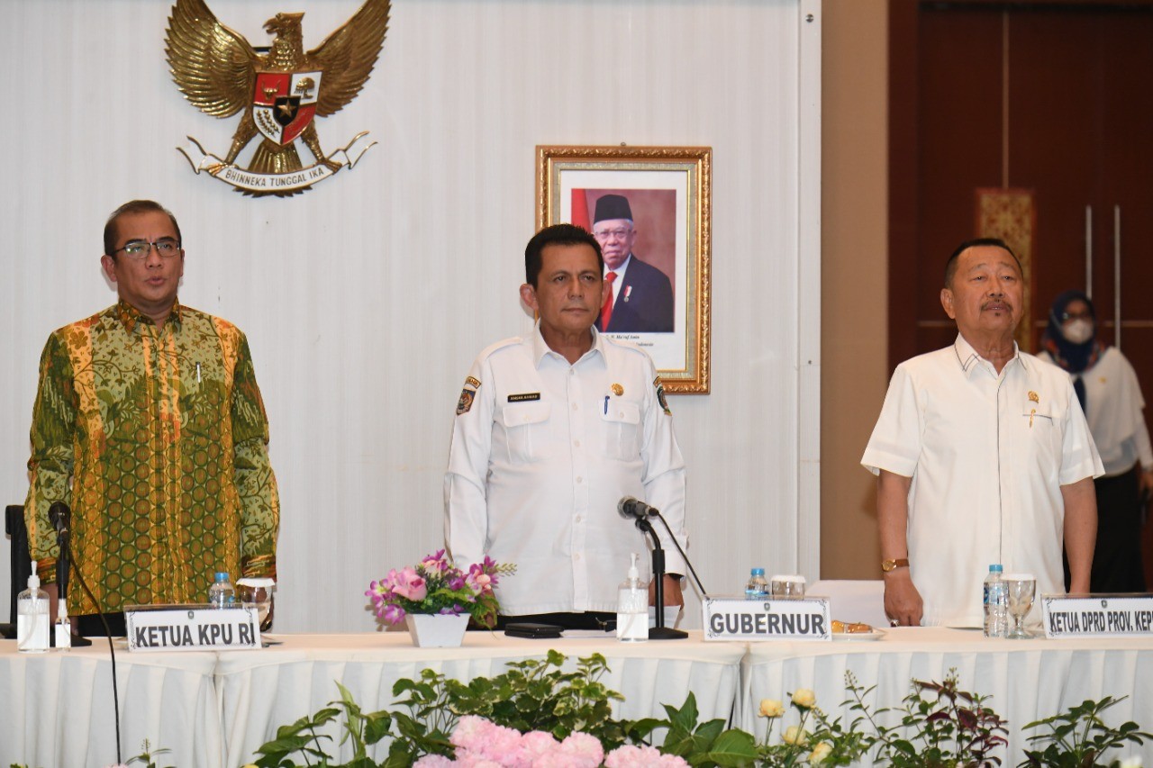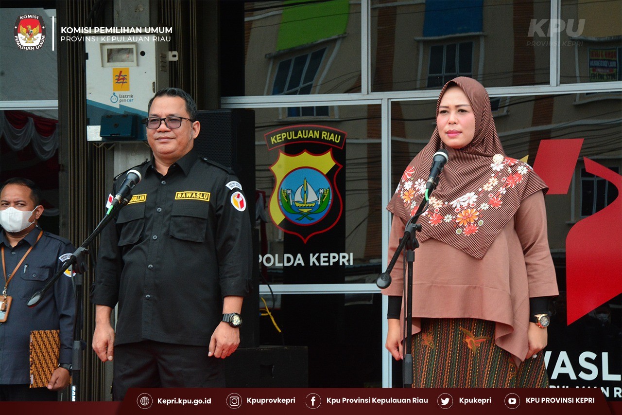 Tanjungpinang (6/7) KPU Provinsi Kepulauan Riau menghadiri Apel Siaga Kesiapan Penyelenggaraan Pemilu Serentak Tahun 2024 di Kantor Bawaslu Provinsi Kepulauan Riau. Dalam kegiatan tersebut turut hadir langsung Ketua KPU Provinsi Kepulauan Riau Ibu Sriwati, SE, MM serta Anggota KPU Provinsi Kepulauan Riau, Bapak Priyo Handoko S.AP, MA, dan Bapak Arison, S.Pt, MM, dan didampingi oleh Plt. Sekretaris KPU Provinsi Kepulauan Riau Bapak Drs. Dirja Abdul Kadir, MM beserta Staff PNS KPU Provinsi Kepulauan Riau. Dalam kesempatan ini Ketua KPU Provinsi Kepulauan Riau Ibu Sriwati, SE, MM menjadi Pembina Apel bersamaan dengan Ketua Bawaslu Provinsi Kepulauan Riau Bapak Said Abdullah Dahlawi, ST. Pada kegiatan Apel ini Bapak Said Abdullah Dahlawi, ST. menyampaikan pentingnya Sinergitas sesama Penyelenggara Pemilu dan instansi lain seperti Polri, Pemerintah Daerah, Forkopimda bahkan Pers dan Media dalam mensukseskan Pemilu 2024. "Kedepannya kesuksesan Penyelenggara Pemilu ini tidak hanya dicapai sendiri seperti KPU saja atau Bawaslu saja, melainkan kesuksesan Penyelenggaraan Pemilu dicapai oleh semuanya". Acara ditutup dengan sesi Foto bersama dan pelepasan Balon ke udara yang menandakan dimulainya Tahapan Pemilu Tahun 2024 dan Kesiapan Penyelenggaraan Pemilu Serentak Tahun 2024.(HumasKPUKepri)