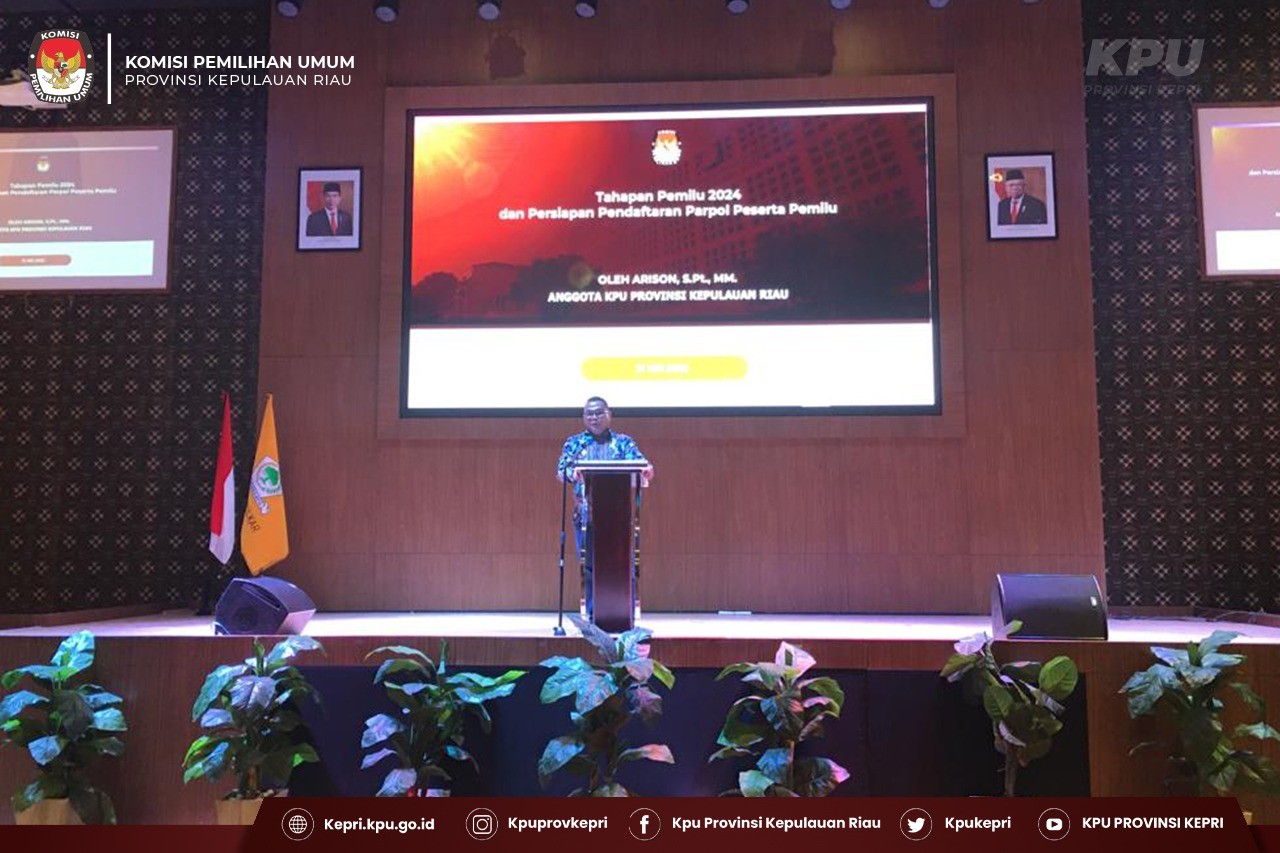 Komisioner KPU Provinsi Kepulauan Riau Menjadi Narasumber pada kegiatan “Pendidikan politik kader (sosialisasi tahapan pemilu) dan halal bihalal partai Golkar se-provinsi kepulauan riau” yang diselenggarakan oleh Dewan Pimpinan Daerah Partai Golongan Karya Provinsi Kepulauan Riau di Aston Hotel & Residence, Batam, Selasa (31/5) Kegiatan tersebut dibuka oleh Ketua Dewan Pimpinan Daerah Partai Golkar Provinsi Kepulauan Riau Bapak Akhmad Ma’ruf Maulana, peserta pada acara dimaksud adalah pengurus partai golkar kabupaten/kota se-provinsi kepulauan riau. Dalam kesempatan ini, Bapak Arison, S.Pt, MM. selaku komisioner KPU Provinsi Kepulauan Riau yang membidangi divisi teknis penyelenggaraan menyampaikan materi dengan tema “Tahapan Pemilu 2024 dan Persiapan Pendaftaran Parpol Peserta Pemilu”. Di akhir penyampaiannya, Arison mengharapkan materi tersebut mampu menjawab sekaligus meningkatkan pemahaman pengurus partai Golkar dalam mempersiapkan seluruh persyaratan yg ditetapkan oleh UU 7/2017, PKPU 6 tahun 2018 dan putusan MK nomor 55/2020 dalam menghadapi tahapan Pendaftaran, Verifikasi dan Penetapan Partai Politik peserta pemilu 2024. Dengan pemahaman yang utuh akan tercipta sinergitas dengan KPU Kepri dan 7 (tujuh) KPU Kab/Kota sebagai penyelenggara pemilu, yg pada akhirnya pelaksanaan tahapan pendaftaran, verifikasi dan penetapan partai poliik berjalan dengan baik dan lancar. Demikian juga selanjutnya terhadap tahapan pemilu dan pemilihan 2024 lainnya. KPU Kepri berikut KPU di 7 Kab/Kota se Kepri, melalui Help desk yang dibentuk siap melayani setiap partai politik yang membutuhkan informasi kepemiluan pungkasnya mengakhiri presentasi tersebut. (HumasKPUKepri)