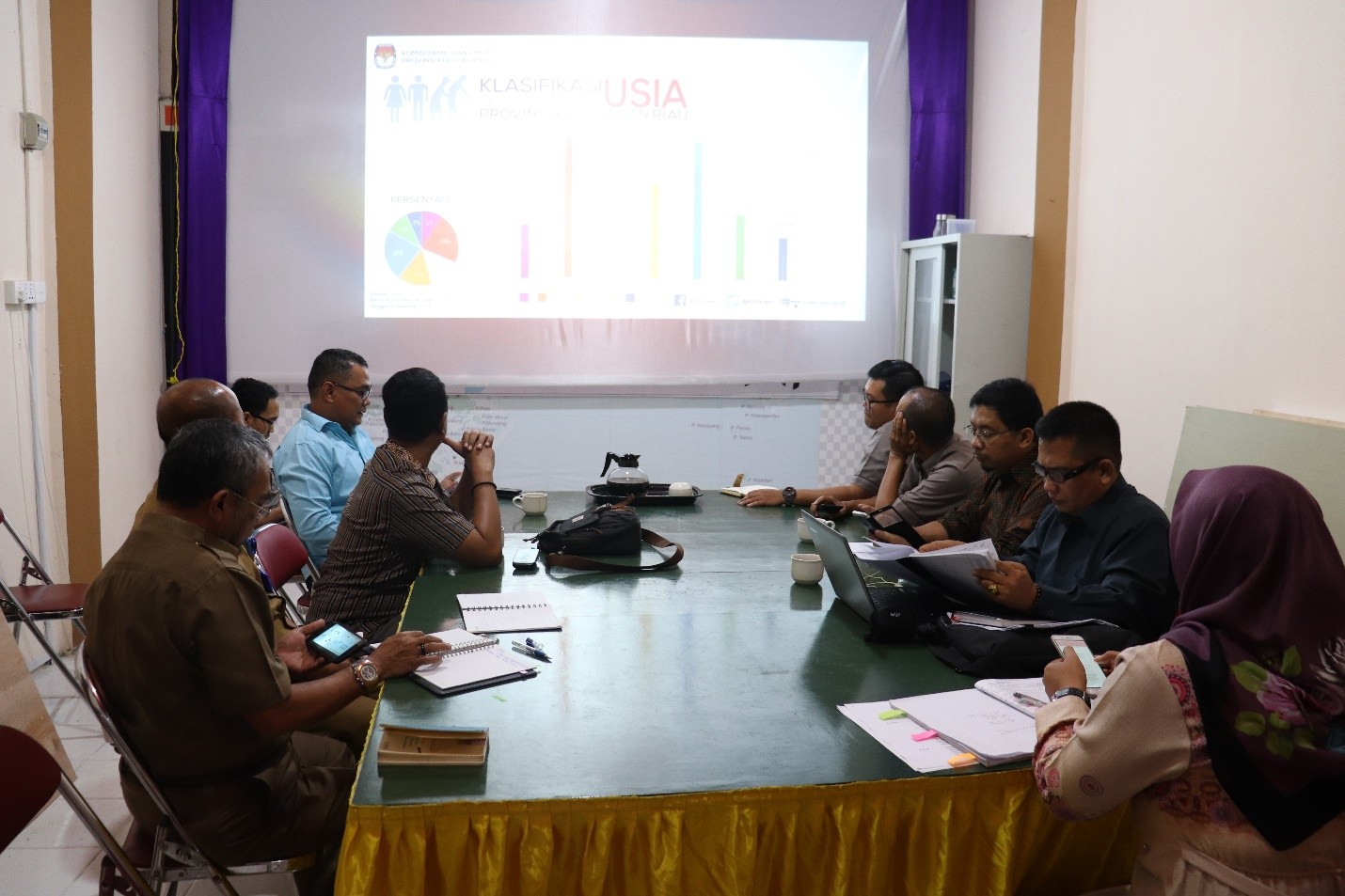 Terwujudnya Daftar Pemilih yang akurat, akuntabel dan terpercaya, KPU Provionsi Kepulauan Riau mengadakan Rapat Koordinasi Persiapan Rekapitulasi Daftar Pemilih Tambahan (DPTb) dan Daftar Pemilih Khusus (DPK) pada tanggal 25 Januari 2019 di Ruang Rapat Kantor KPU Provinsi Kepulauan Riau, Tanjungpinang. Peserta dalam acara rakor ini adalah Jajaran Sekretariat KPU Provinsi Kepulauan Riau, Kepala Bagian serta Anggota Divisi Perencanaan Data dan Operator Sidalih KPU Kabupaten/Kota. Rapat Koordinasi ini bertujuan adalah melakukan rekapitulasi Daftar Pemilih Tambahan sementara menjelang rapat pleno terbuka rekapitulasi DPTb dan menghimpun tanggapan dan masukan dari peserta rapat terhadap hasil rekapitulasi DPTb. Kegiatan ini dibuka oleh Ibu Sriwati, SE. MM selaku Ketua KPU Provinsi Kepulauan Riau, kemudian dilanjutkan dengan arahan oleh Bapak Widiyono Agung Sulistiyo, ST selaku Wakil Divisi Perencanaan dan Data yang menyampaikan bahwa KPU Kota Batam untuk memastikan bahwa PPK dan PPS telah melakukan komunikasi dengan RT dan RW via WA untuk berkoordinasi dan menyelesaikan masalah didaerah rawan serta melakukan antisipasi terhadap pertambahan jumlah pemilih tambahan didaerah rawan. Komisioner KPU Kepri Priyo Handoko sebagai pemateri dalam presentasinya menyampaikan bahwa Relawan Demokrasi gencar melakukan sosialisasi kepada masyarakat terkait pemilih pindah memilih agar masyarakat yang akan pindah memilih dapat terakomodir dan terdata dengan baik. “Kita harus mengajak semua relawan demokrasi untuk sama-sama menginstall aplikasi Pemilu 2019 agar memudahkan dalam mengecek DPT karena tugasnnya melakukan sosialisasi kepada masyarakat,” kata Priyo. Priyo juga mengingatkan untuk meminimalisir pemilih yang mempermasalahkan kekurangan surat suara ketika Pemilu pada 17 April 2019 nanti walaupun tingkat partisipasi tidak naik dengan jumlah yang besar. Hal ini bertujuan untuk meminimalisir kejadian kurangnya surat suara saat Pemilu April 2019 nanti. Penjelasan selanjutnya, untuk Rekaptiluasi DPK akan dilakukan pada tanggal 07 Maret 2019 hingga 17 Maret 2019. Penyusunan DPK pada Juknis halaman 17 menyatakan bahwa DPK bisa menjadi DPT dengan ketentuan yang berlaku. DPK dapat menjadi DPT akan tetapi harus berkoordinasi dengan Bawaslu. “Berikan keterangan kepada Bawaslu jika tidak dimasukkan ke DPT, maka kita tidak dapat menjamin logistiknya karena seperti di Batam, jumlah DPK cukup besar hingga 3000-an, jika harus memilih pada saat pemilu nanti maka hanya bisa menggunakan surat suara yang tersedia, jika sudah habis kita tidak dapat memfasilitasinya,” paparnya. Setelah presentasi dari Priyo, acara selanjutnya adalah diskusi mengenai permasalahan rekap DPTb dan DPK di masing-masing KPU Kabupaten/Kota. KPU Kabupaten Lingga mendapat protes dari Polres dan pihak RS dikarenakan KPU tidak memberikan akses untuk pemilih yang sakit seperti sebelumnya. Terkait kendala tersebut Arison sebagai Komisoner KPU Provinsi Kepri menjawab “KPU hanya memfasilitasi hingga pendataan jika dia sakit tidak mengunakan hak pilihnya maka itu kewenangannya, jika kebutuhan pribadi seperti tandu, kursi roda dan lainnya itu sudha tanggugjawab keluarga.” Kendala lainnya di KPU Kabupaten Lingga adalah jumlah DPK Lapas berjumlah 30 pemilih, jika dimasukkan ke DPT akan mendapatkan kesulitan untuk dimasukkan ke TPS sekitar dikarenakan TPS sekitar jumlanhnya mendekati angka 300 pemilih/TPS. Oleh karena itu Priyo mengatakan bahwa harusnya untuk TPS disekitar Lapas dan Rumah Sakit dari awal dibuat tidak dengan jumlah yang mendekati 300 sehingga dapat digunakan saat hari pemilih. Dia juga menyampaikan untuk mengkoordinasikan kepada bagian Teknis untuk melakukan sosialisasi mengenai ini sehingga kita dapat mengantisipasi mengenai pemilih yang berada di Lapas atau Rumah Sakit ini. Koordinasi juga harus dilakukan bersama Bawaslu terkait persetujuan apakah DPK yang di Lapas dan Rumah Sakit disetujui untuk dirubah menjadi DPT. Pembahasan diskusi lainnya adalah mekanisme mengenai pemilih yang akan pindah pilih ke luar negeri. Terkait hal tersebut form A.5 dapat diberikan pada saat diminta dan Pengisian formulir pindah pemilih luar negeri akan di isi oleh PPLN. Kegiatan ditutup oleh Divisi Perencanaan dan Data Provinsi Kepulauan Riau yaitu Bapak Priyo Handoko. (humaskpukepri)