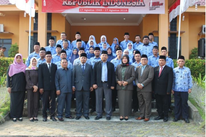 KPU Provinsi Kepri melaksanakan upacara bendera bersama dengan KPU Kota Tanjungpinang dan KPU Kabupaten Bintan bertempat di Halaman Kantor KPU Kabupaten Bintan dengan Inspektur Upacara Ketua KPU Provinsi Kepulauan Riau, Sriwati, SE.MM. Sedangkan KPU Kabupaten/Kota yang lain melaksanakan upacara bendera di halaman Kantor masing-masing dengan Inspektur Upacara Ketua KPU Kabupaten/Kota. Upacara bendera dilaksanakan secara khidmat dalam cuaca yang cukup cerah, meskipun dalam suasana keterbatasan sarana dan prasarana terutama ketersediaan sumber daya manusia (pegawai) yang sangat kurang, misalnya KPU Kabupaten Natuna dan KPU Kabupaten Kepulauan Anambas yang jumlah PNSnya hanya 5 orang. KPU Kabupaten Natuna KPU Kabupaten Lingga KPU Kota Batam KPU Kabupaten Karimun Upacara bendera KPU Provinsi Kepulauan Riau dimulai tepat pada pukul 07.30 WIB di ikuti oleh seluruh pimpinan dan karyawan/karyawati KPU Provinsi Kepri, KPU Kota Tanjungpinang dan KPU Kabupaten Bintan. Sriwati, SE.MM selaku Inspektur Upacara membacakan sambutan Ketua KPU RI dalam rangka upacara peringatan hari kemerdekaan Republik Indonesia ke-73 17 Agustus 2018. Dalam sambutannya Ketua KPU RI menggaris bawahi pentingnya jiwa Nasionalisme. Sebagai penyelenggara pemilu kita diharapkan selalu menerapkan nilai-nilai Nasionalisme dalam menjalankan tugas-tugas kita. Kita dituntut untuk menciptakan penyelenggaraan pemilu yang transparan, berkualitas, berintegritas, aman dan damai serta menghasilkan output yang diharapkan yaitu menciptakan estafet kepemimpinan negara yang bisa merubah tatanan kehidupan berbangsa dan bernegara ke arah yang lebih baik. Di akhir sambutannya Ketua KPU RI menyampaikan bahwa untuk membakar semangat Nasionalisme kita, marilah bersama-sama mengucapkan : Indonesia…Merdeka…. Indonesia…Merdeka. Dirgahayu Republik Indoensia Ke-73, Kerja Kita Prestasi Bangsa. (AH&AK)