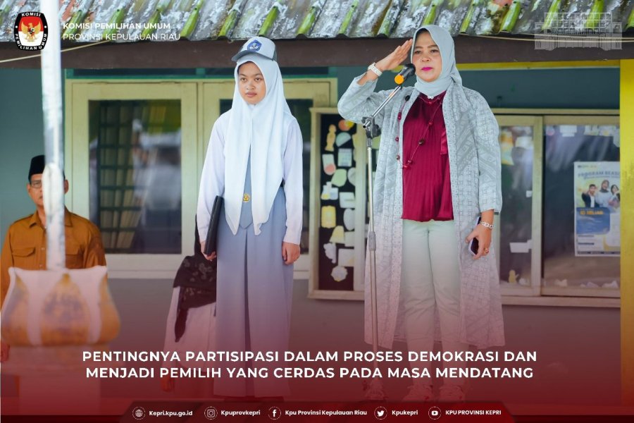Komisi Pemilihan Umum (KPU) Provinsi Kepulauan Riau terus mengintensifkan upaya pendidikan pemilih melalui kegiatan sosialisasi berkelanjutan. Kegiatan bertajuk "Suara Kita, Masa Depan Kita" dilaksanakan di lingkungan SMA Negeri 1 Toapaya, Senin (25/08/2025). Anggota KPU Provinsi Kepri, Jernih Millyati Siregar, hadir sebagai pembina pada upacara bendera di SMA Negeri 1 Toapaya. Dalam paparannya, ia menekankan pentingnya partisipasi generasi muda, khususnya pemilih pemula, dalam proses demokrasi. Ia menjelaskan bahwa pemilu menentukan arah kebijakan bangsa dan daerah. Jernih juga menyampaikan materi tentang hak dan kewajiban sebagai pemilih, pentingnya memilih secara cerdas, serta tata cara pelaksanaan pemilihan umum. Kegiatan ini merupakan bagian dari Program Pendidikan Pemilih Berkelanjutan KPU, yang bertujuan untuk menumbuhkan kesadaran politik di kalangan generasi muda, khususnya pelajar SMA. Turut hadir Kabag Keuangan dan Umum, Dyah Anggraini dan jajaran sekretariat KPU Kepri. Melalui program ini, KPU berharap para siswa memahami pentingnya partisipasi dalam proses demokrasi dan dapat menjadi pemilih yang cerdas pada masa mendatang. -Humas KPU Kepri-