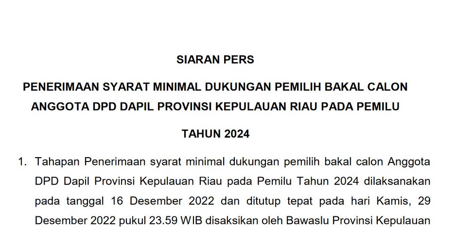 Untuk memudahkan bakal calon perseorangan Peserta Pemilu anggota DPD tahun 2024, formulir yang digunakan untuk daftar pendukung bakal calon perseorangan peserta Pemilu DPD Tahun 2024 masih menggunakan template formulir pemilu sebelumnya dengan beberapa penyesuaian, salah satunya adalah tidak dibubuhi meterai. Template formulir dapat diunduh di laman KPU, serta bisa disesuaikan atau diperbanyak sesuai dengan kebutuhan.