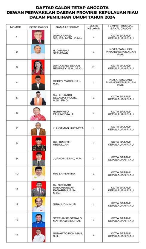Daftar Calon Tetap (DCT) DPD RI Dapil Kepri